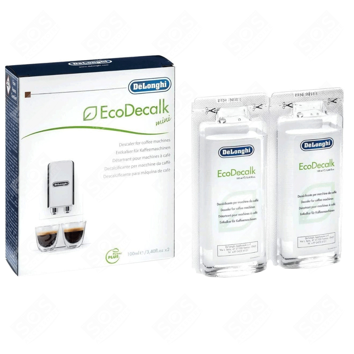 Boite de 2 pièces de détartrant EcoDecalk pour Cafetière, Expresso DELONGHINouveau produit monodose de détartrage écologique, fait à base de composants végétaux (acide lactique) pour toutes les machines à café De'Longhi.Conçu pour être respectueux de l'environnement mais également 3 fois plus puissant que les détartrants traditionnels. Non polluants pour l'environnement. Non corrosif. Non irritant..