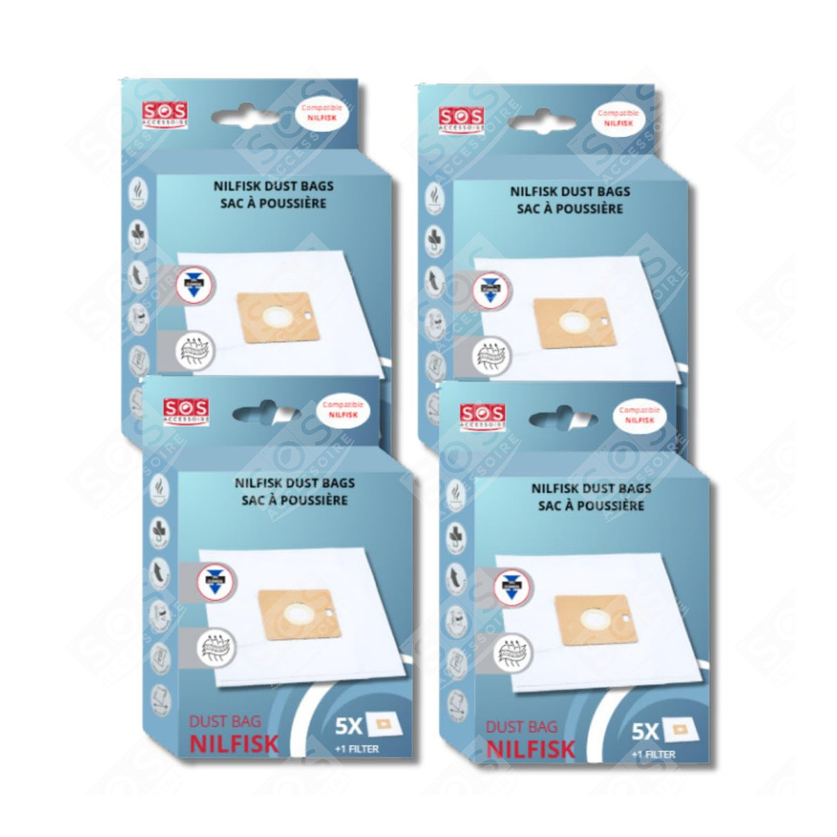 Lot de 4 boîtes de 5 sacs avec 1 pre filtre COUPE/COMPACT/GO/FORCE Compatibles pour Aspirateur NILFISK
